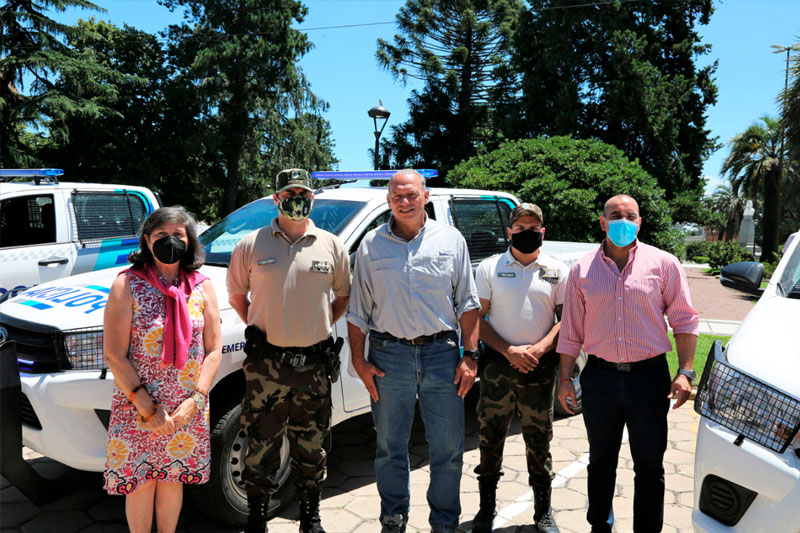 El Subsecretario Calviño Guillermo dentro del Plan de Fortalecimiento de la seguridad del Ministerio de Seguridad de la Provincia de Bs As, entregó en la ciudad de Carlos Tejedor, tres móviles (camionetas 4x4) destinados al Comando de Prevención Rural (CPR), junto a la Intendenta Celia Giannini de Lafleur.
