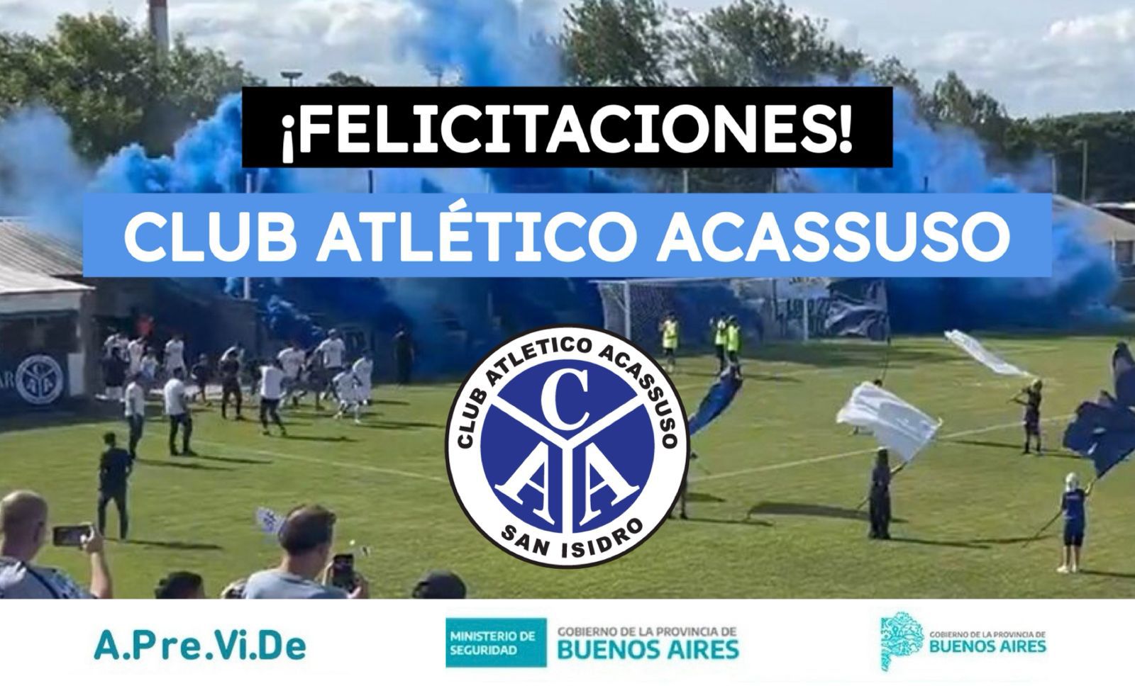La Agencia de Prevención de la Violencia en el Deporte (APreViDe) felicita al Club Atlético Acassuso tras la victoria en la Final del Reducido de la Primera B Metropolitana 2025 y por su ascenso a la Primera Nacional.